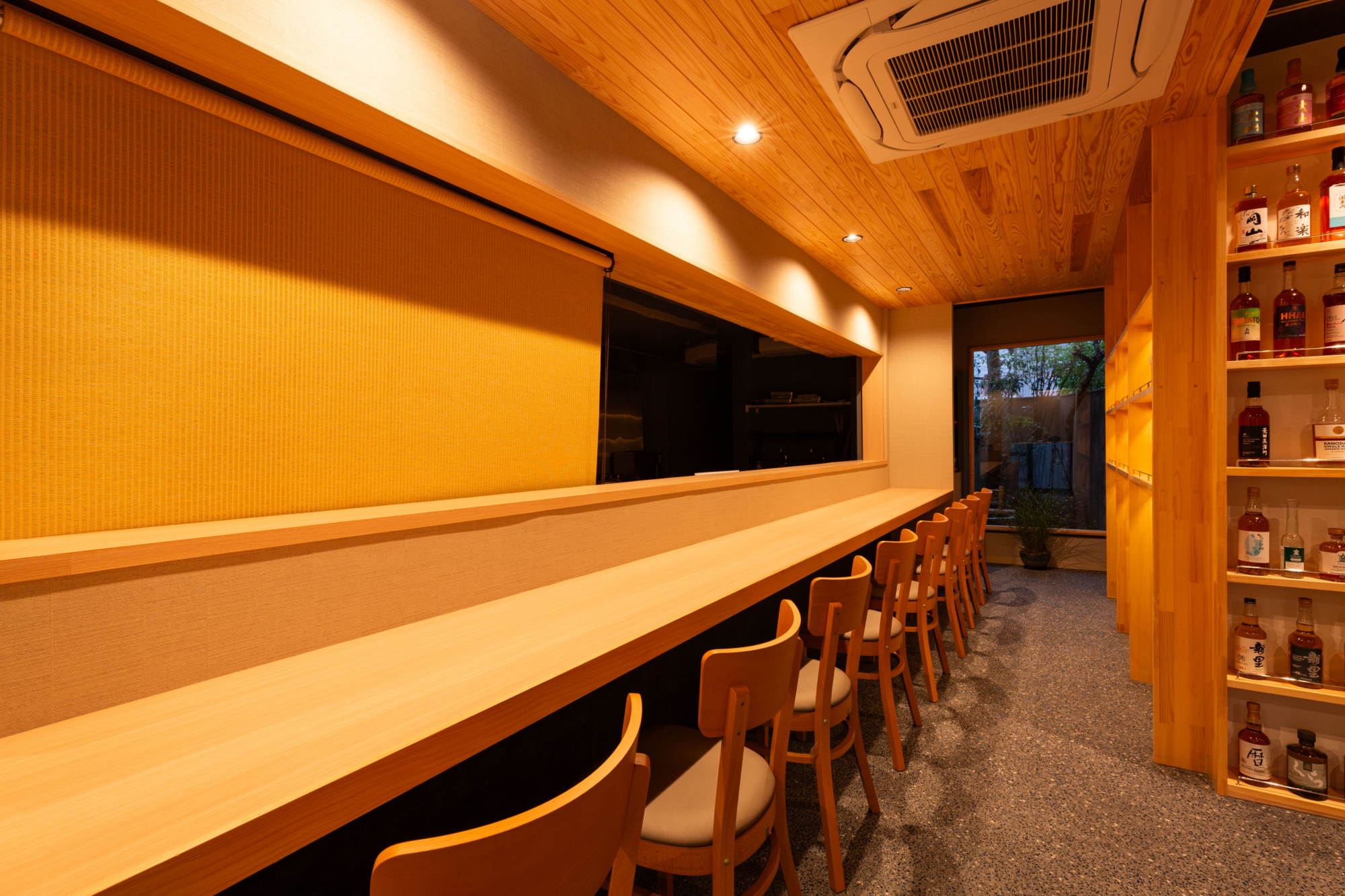 | 座席数 | 25席 (食事カウンター8席・個室2席(1部屋に6名まで)・バーカウンター5席) |